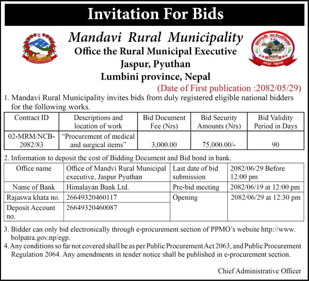 सार्वजनिक खरिद/बोलपत्र सूचना