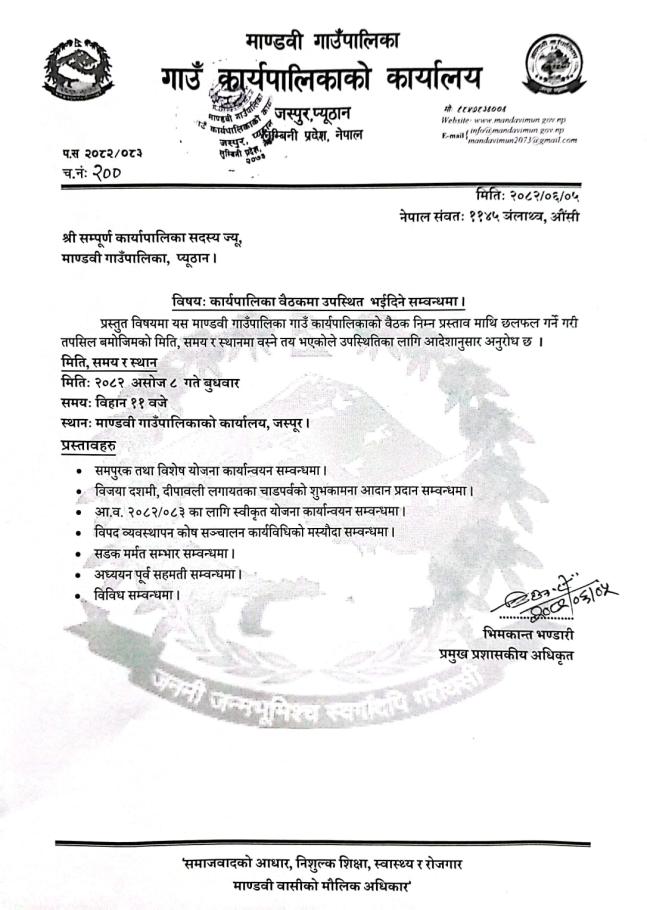 कार्यपालिका बैठकमा उपस्थिति सम्बन्धमा