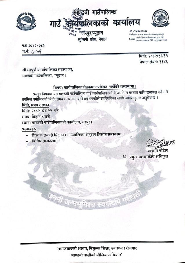 Home » कार्यपालिका बैठकमा उपस्थिति सम्बन्धमा