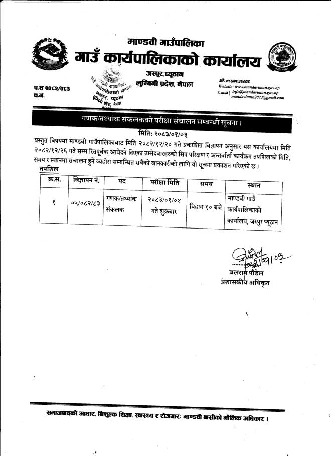 Home » गणक/तथ्यांक संकलकको परीक्षा संचालन सम्बन्धी सूचना ।