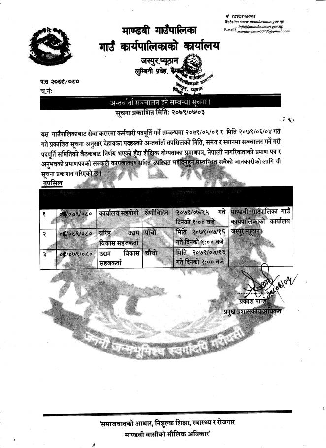 Home » कार्यालय सहयोगी, बरिष्ठ उद्यम विकास सहजकर्ता र उद्यम विकास सहजकर्ताको अन्तर्वार्ता संचालन सम्बन्धि सूचना