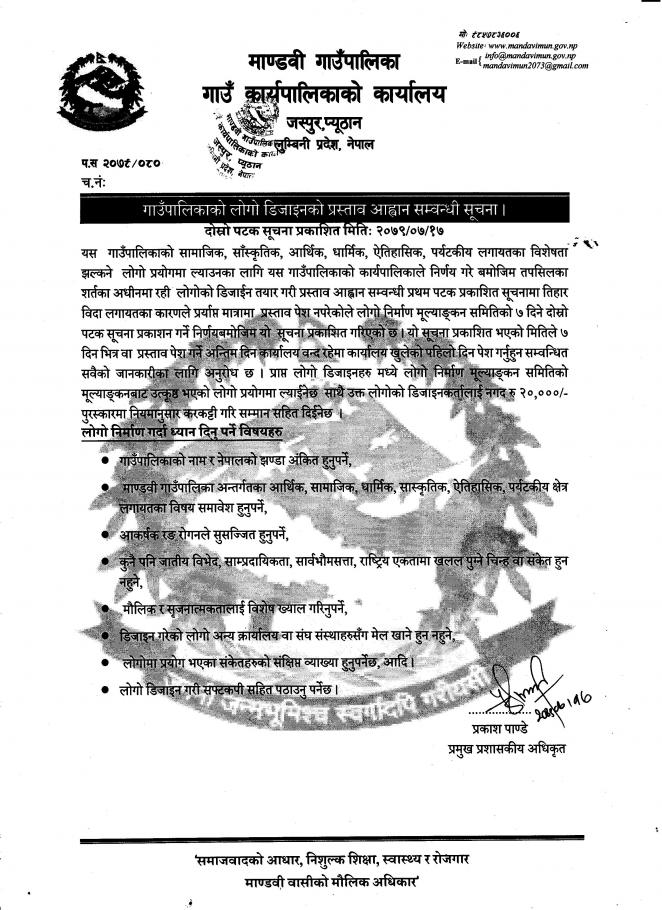 गाउँपालिकाको लोगो डिजाइनको लागि दोस्रो पटक प्रस्ताव आव्हान सम्बन्धि सूचना