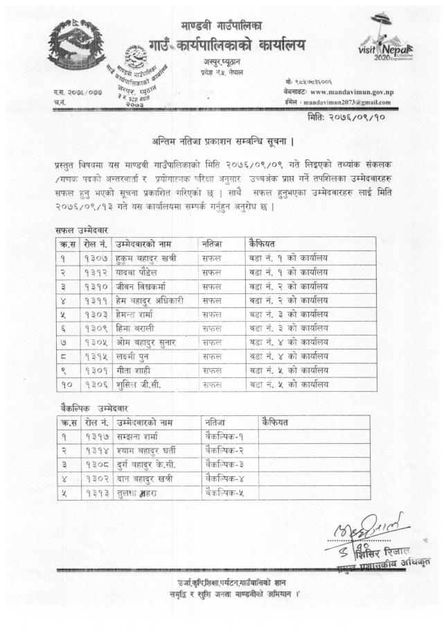 Home » तथ्यांक संकलक/गणक पदको अन्तिम नतिजा सम्बन्धमा |