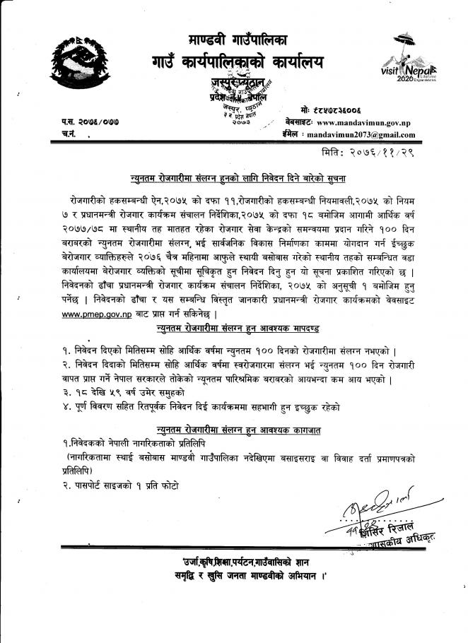 न्युनतम रोजगारीमा संलग्न हुनको लागि निवेदन दिने बारेको सूचना |