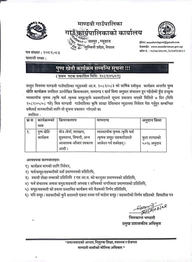 पुष्प खेति कार्यक्रम सम्बन्धी सूचना
