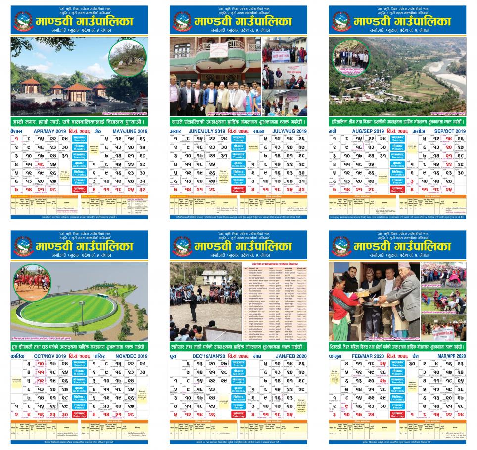 माण्डवी गाउँपालिकाद्वारा प्रकाशित २०७६ सालको भित्ते पात्रो