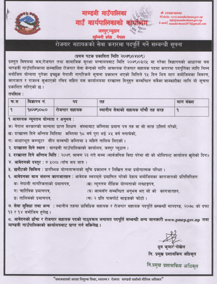 Home » रोजगार सहायकको सेवा करारमा पदपूर्ति गर्ने सम्बन्धि सूचना