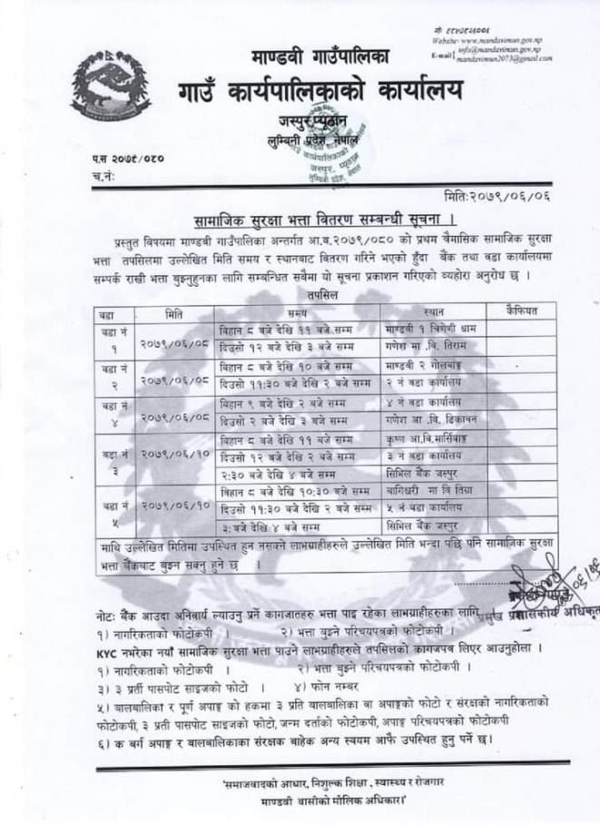 Home » सामाजिक सुरक्षा भत्ता वितरण सम्बन्धि सूचना